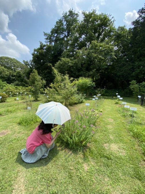 バッタを追い、葉っぱを覗くわりと植物園では夢中な私、